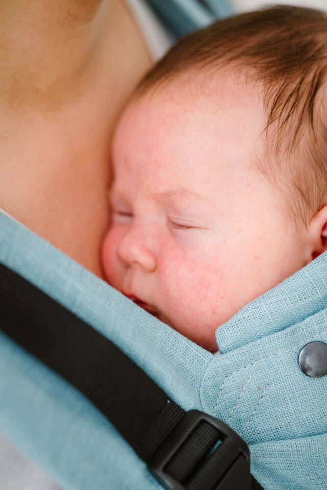 When your baby falls asleep, you can additionally support the sleeping head with the hood attached to each carrier.