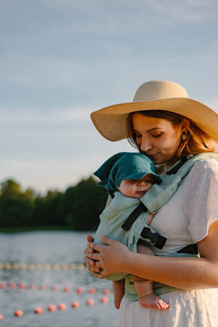 The KAVKA multi-age model 2024 is our response to the needs of parents who want to start carrying their children as early as possible and to the advisors parents turn to. We've decided to make changes to make this possible. The width adjustment panel now folds to create a pleat when it's tightened (similar to the handy carrier). The hip belt is thinner (we've slimmed it down from 10 to 8 mm), allowing the baby's legs to snugly fit against the parent's body.