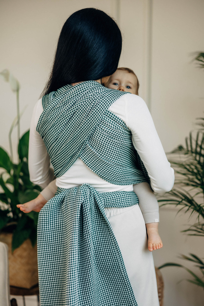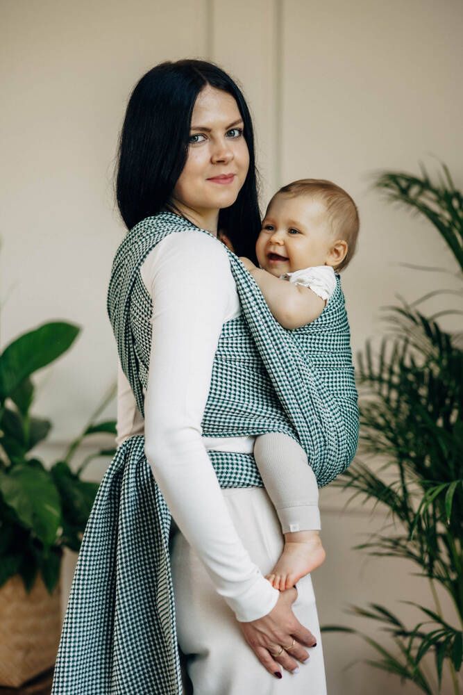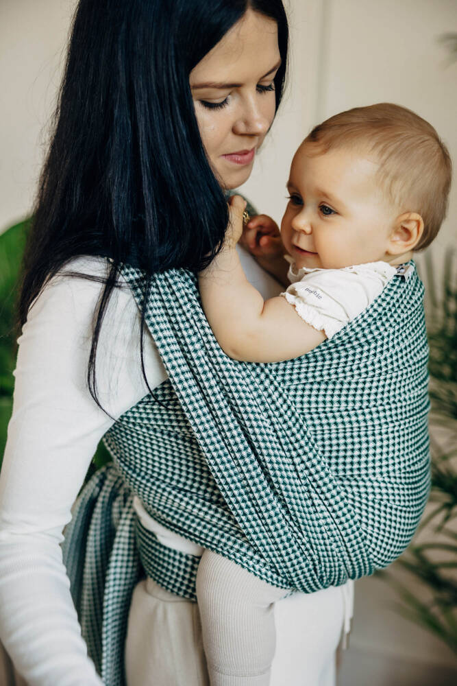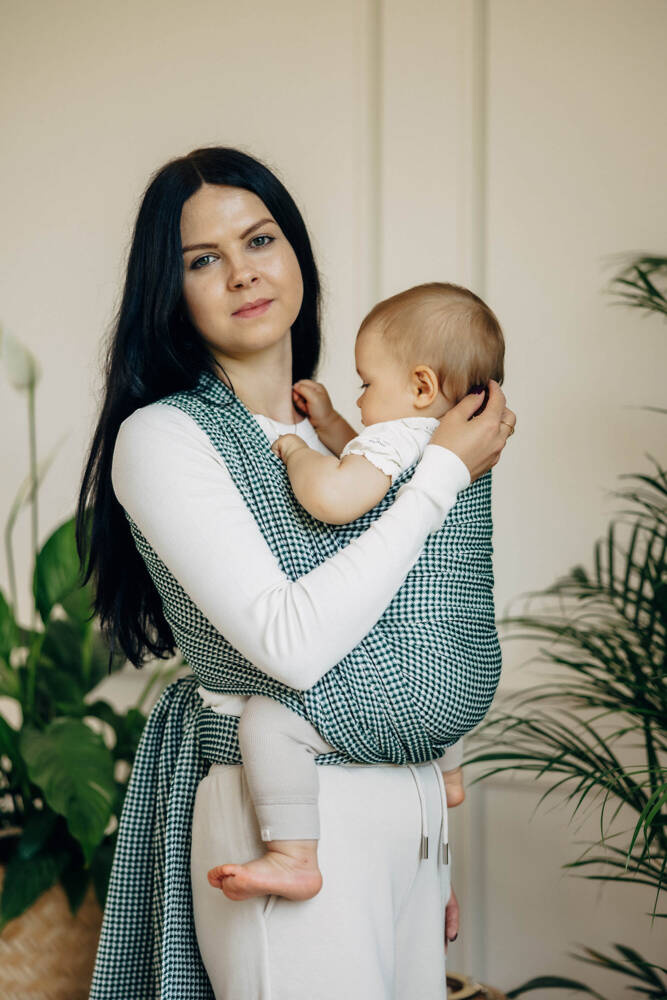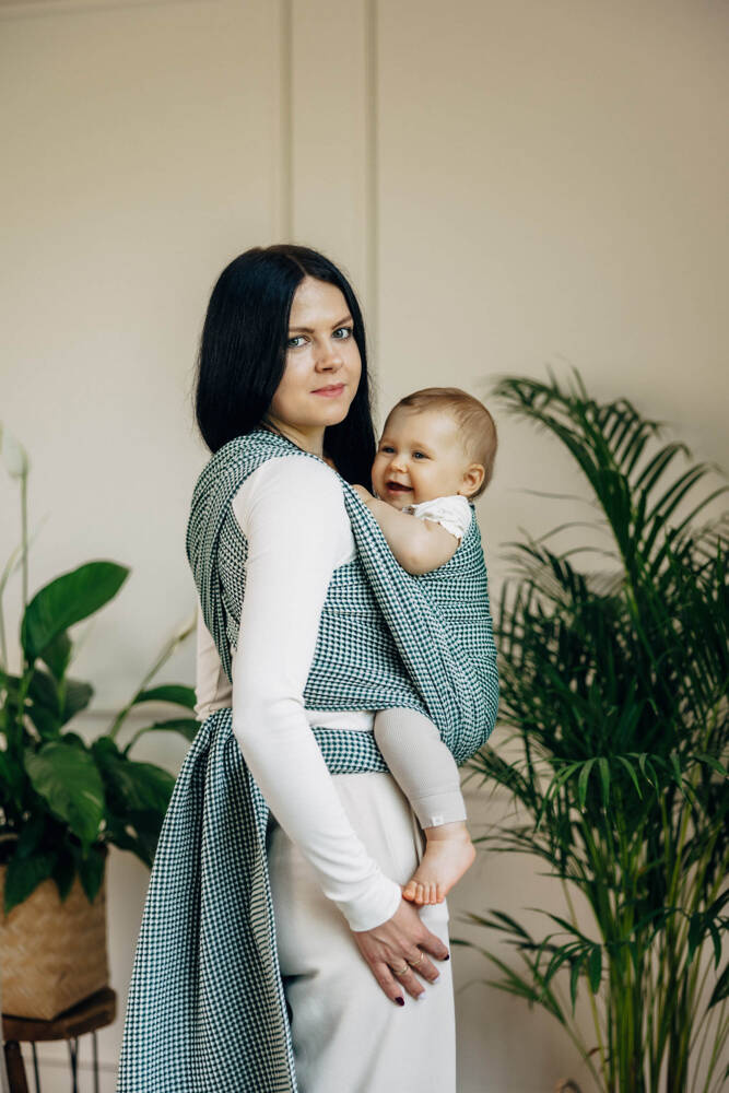 Woven wrap is simple to use and allow you to carry a baby in many different ways. You can try front carry like kangaroo or back positions like backpack. Good for long walk, because distributes the weight symmetrically.