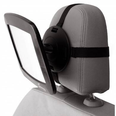 •Rotating Swivel Arm makes it easy to adjust the mirror for maximum visibility • Swivel & adjust angle to see rearward facing children • Straps securely to headrest •Safe shatter-proof mirror