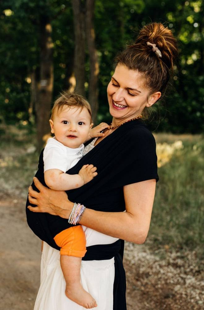 The sling is made of 100% organic cotton, airy and soft to the touch. With the help of a sling, closeness and a stronger bond are created between the parent and the child.