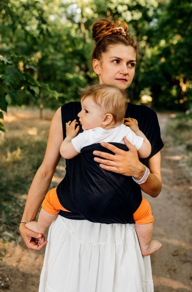 The sling for a child is not only comfortable, safe, but also healthy because it provides the child with a natural position of the physiological frog and supports the spine throughout the entire stretch. The sling is ideal for carrying a child from the first day of life, it is a convenient solution for active parents, allowing you to freely move with your baby, being a convenient alternative to a not always handy baby stroller.