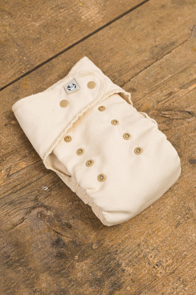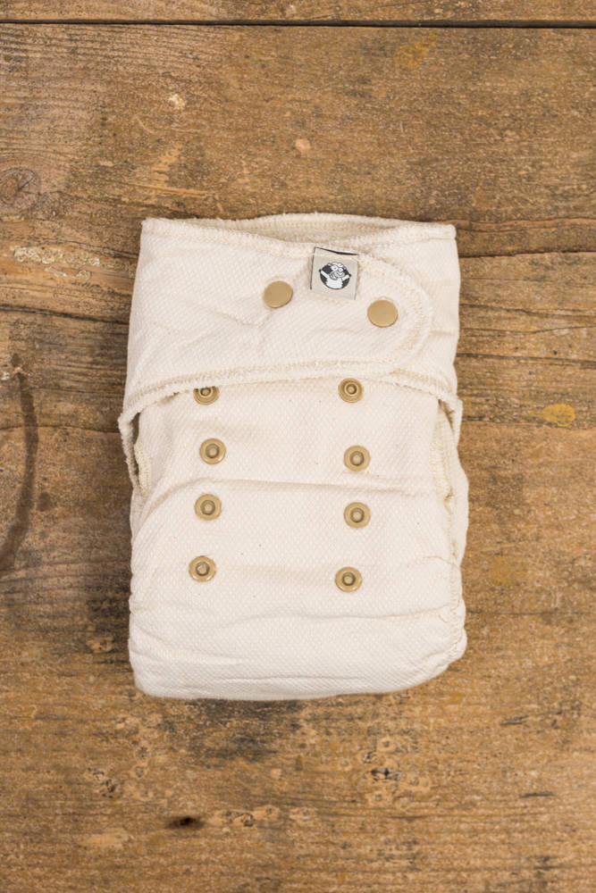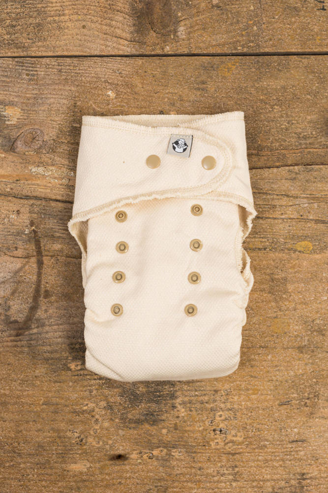 Before using for the first time: before washing your fitted diaper for the first time it is advisable to soak it overnight in hot water with dish washing soap to speed up the process of rinsing out the oils contained in the cotton. As cotton is a natural fibre it needs from 5 to 9 washes to become fully absorbent. The diaper can be put on after the first wash, but it is worth remembering to change it more often (this eliminates the dilemma of washing clean clothes, which is not always in line with our convictions).