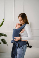 Half buckle carrier is a convenient combination of a adjustable carrier and a woven wrap. It has a hip belt with a buckle and long shoulder straps just like a sling.