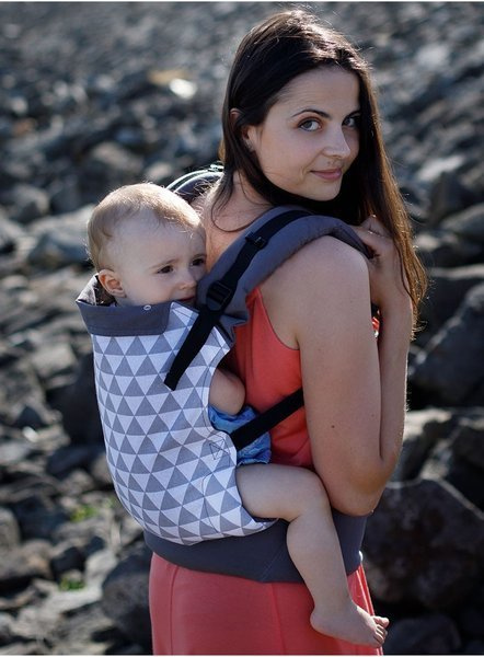 Ergonomic carriers are extremely comfortable and fast to use. We recommend that for babies which can sitting down, because only then it will be completely safe for their small spines.