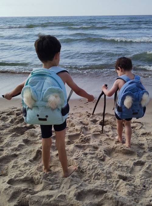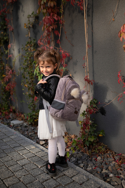 Inside the backpack there is a deep slip pocket, e.g. for a book, coloring book or crayons, as well as - a larger mesh pocket for a bottle or thermos bottle, with an elastic band to keep the container upright. The outer part of the backpack on the sides also has two mesh pockets with sewn-in on elastic band. You can put there a small water, wipes or a favorite toy - anything you want your child to have at hand at any time. The fifth pocket is a zippered and very capacious "bear's mouth", and nothing will fall out of it anymore!
