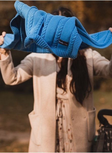 Warm and mellow knitted blanket made of 100% cotton. It comes in handy from the first days of your baby's life both at home and during travels.