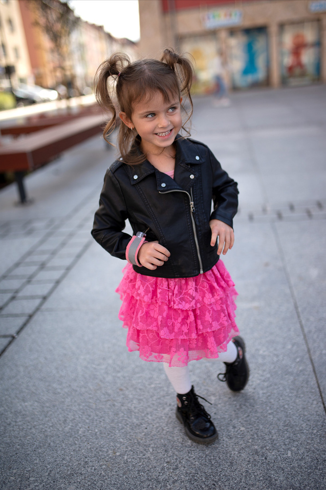 The reflective wristband was sewn from quilted minky material. Two layers of this material in the wristband make it wrap around the child's hand like a soft sponge, and the reflective material does not press into the body. Reflective tape has been sewn only on the outer part of the wristband, so that such a band worn on the other side (without reflective tape), can be used during training, cycling or other physical activity, such as rubbing the forehead from sweat.