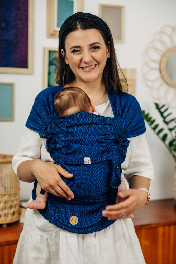 LennyHybrid Half Buckle Carrier is a unique carrier that combines the advantages of an adjustable carrier and a wrap. Thanks to its design and adjustment system it allows to achieve a correct, ergonomic position of the baby. Additionally, it has two wrap straps that stabilize the baby's position on the sides, which makes it possible to carry a newborn baby safely. The panel adjustment makes the carrier grow with your baby.