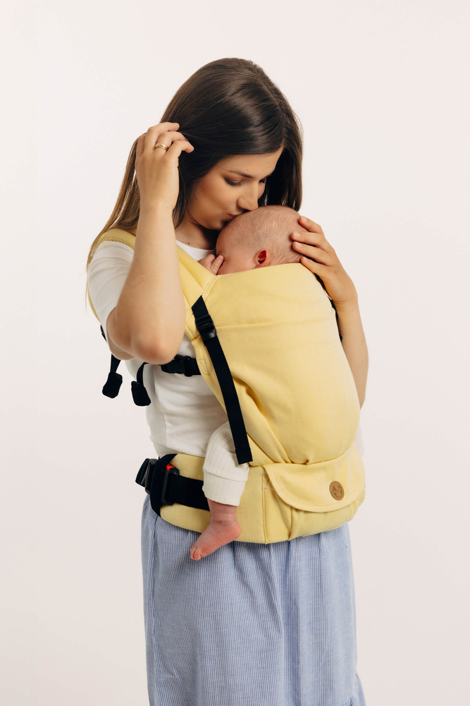Very light & compact baby carrier. Minimum amount of straps, buckles & adjustment options for maximum comfort & safe babywearing