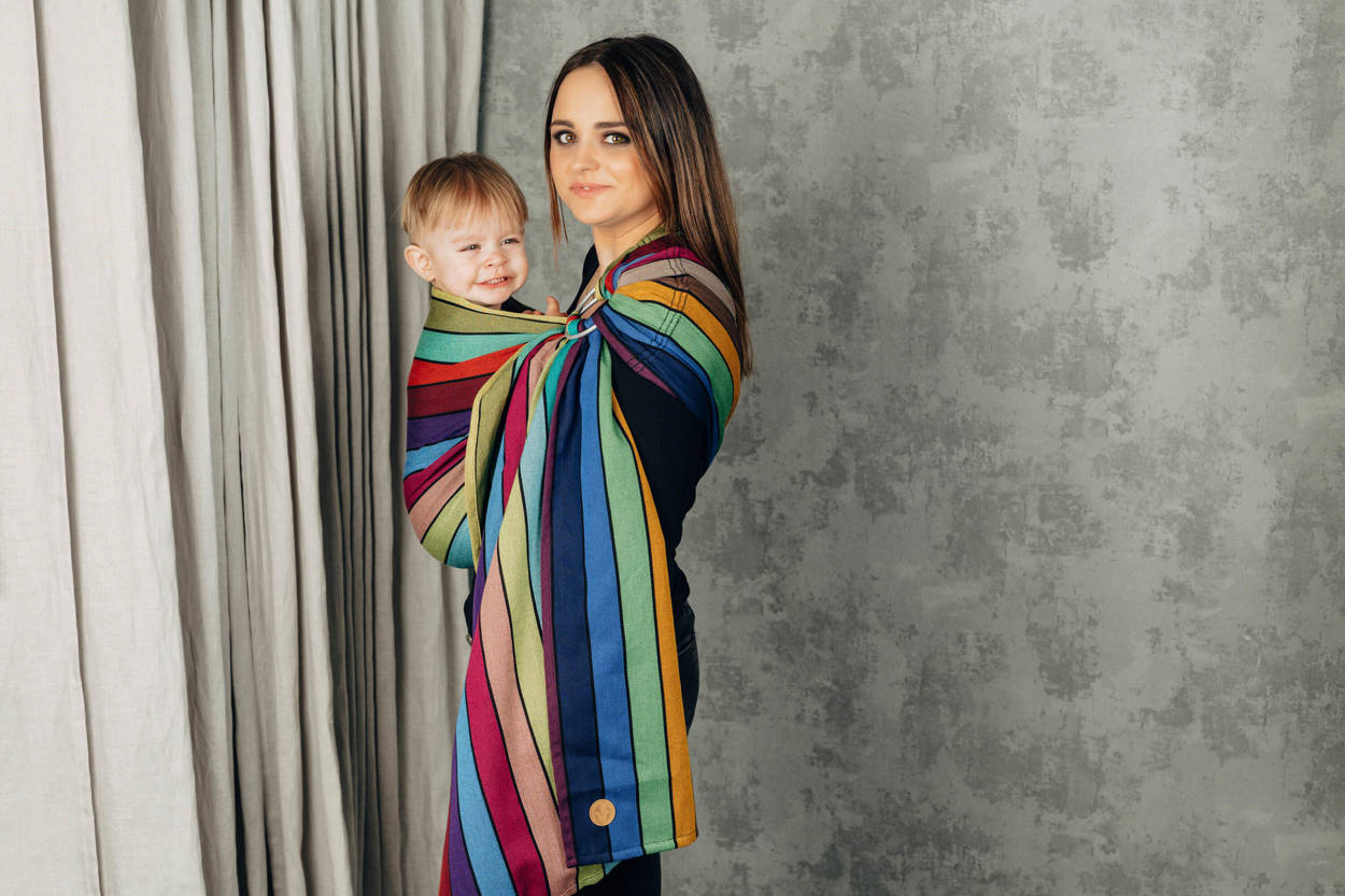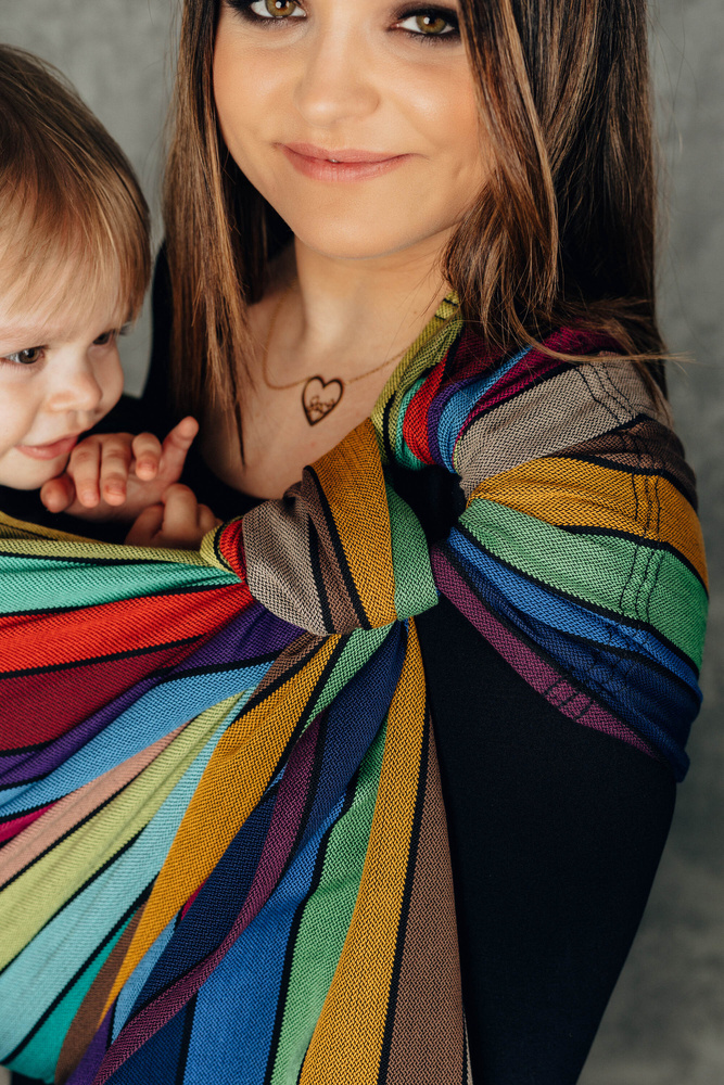 Ring Sling is a quick, easy to use and lightweight babywearing option. Its great advantage is the fact that you do not have to wrap it. The only thing you have to do is to pull the fabric correctly through the rings, put the baby in and tighten it (according to the instructions).