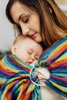 Ring Sling is a quick, easy to use and lightweight babywearing option. Its great advantage is the fact that you do not have to wrap it. The only thing you have to do is to pull the fabric correctly through the rings, put the baby in and tighten it (according to the instructions).