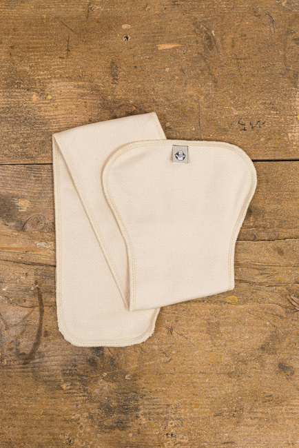 Wide-back inserts will be loved by parents whose toddlers have moderate pee and are beginning to have solid poop. Flat inserts without additional elastics, made of birdseye fabric, with a wider back part to protect the wool cover from getting dirty, increase the absorbent surface without increasing the thickness of the insert itself. Recommended for babies who already have regular bowel movements (although this is obviously not a prerequisite).