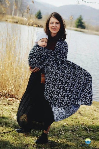 Ring Sling is simple to use and allow you to carry a baby in many different ways – front or back positions (suitable for older children) or hip carry. Good for short walk or fast shopping, because weighs down your spine asymmetrically. You can always take your ring sling with you because it takes up little space and can be pre-tied.