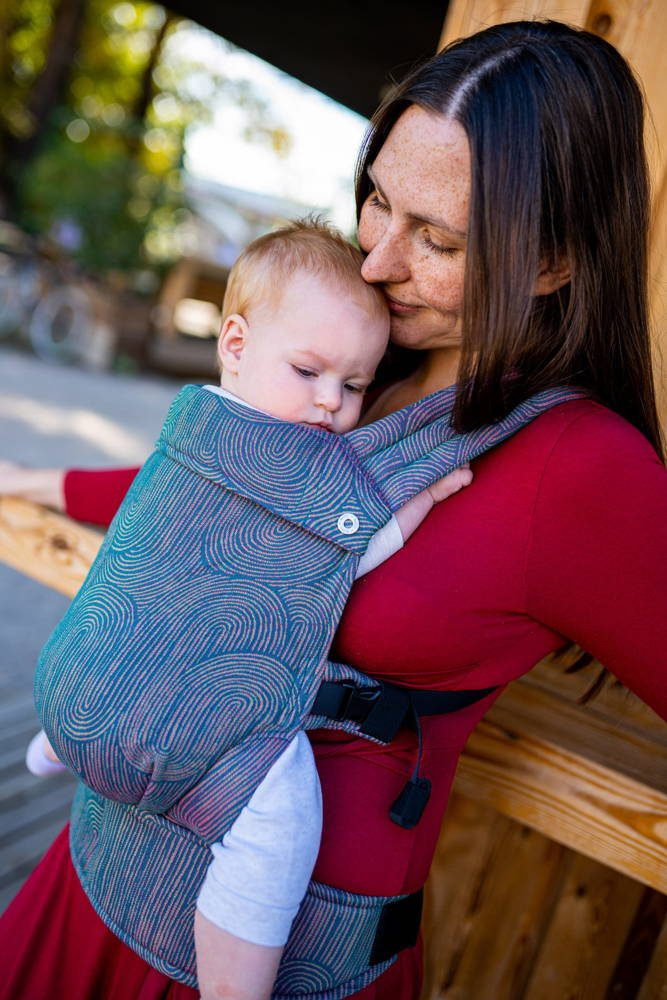 Nosidełko posiada bardzo intuicyjną regulację wysokości i szerokości panela, dzięki czemu łatwo i bardzo szybko dostosujesz je do swojego dziecka. Nosidełko ma wygodny i szeroki pas biodrowy, który wraz z dobrze wypełnionymi pasami naramiennymi odciąża Twój kręgosłup i ramiona.