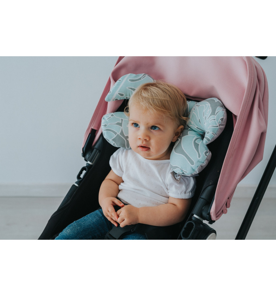 The purpose of the pillow is to minimize the impact on the child's head from shocks that it may experience during travels and walks. Additionally, it provides comfortable support for the child's head, helping to maintain it in the correct, stable position. It can also be used during breastfeeding.