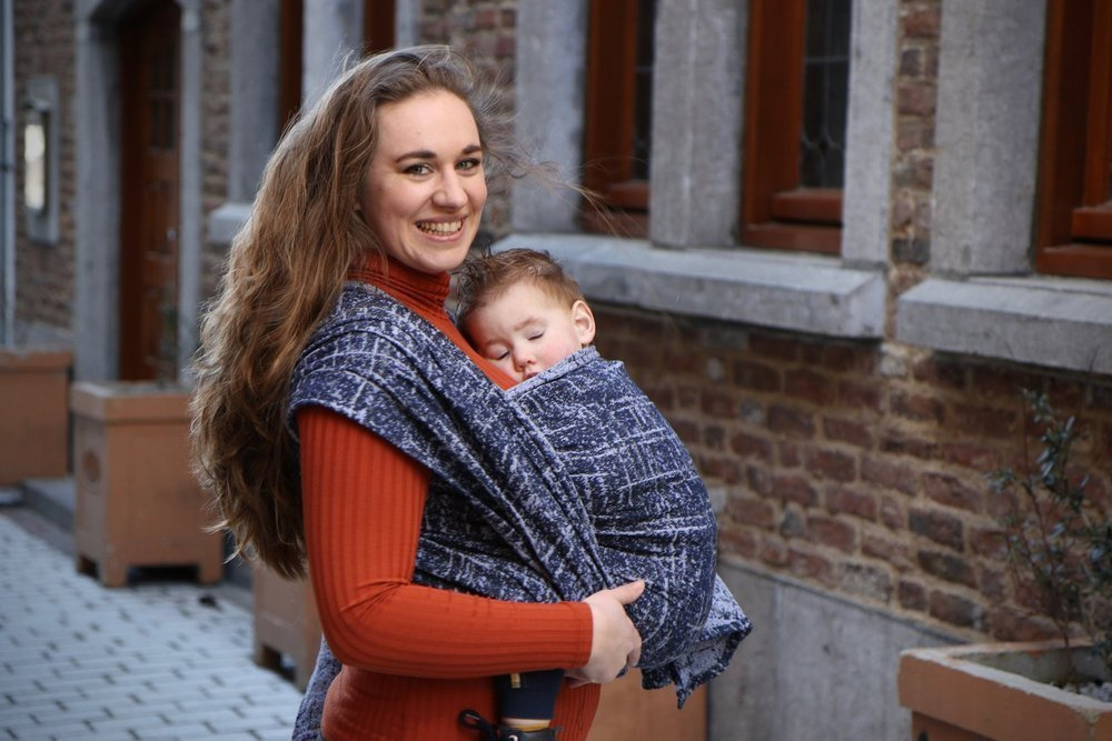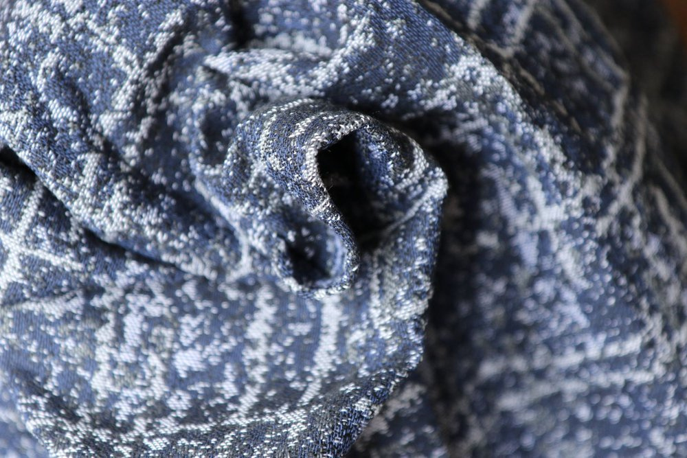 Yaro Sparkling Ultra Navy Grey Repreve is a beautiful wrap in handwoven collection. The wrap is woven in our signature Ultra weave, which makes this wrap perfect to wrap your bigger baby and it will give enough support even when used single layered. The wrap has two very different sides, one dark and tone light which makes it versatile in its looks. The repreve in the wraps add to the support but also makes this wrap very soft. It needs a little breaking in but will become wonderfully soft.