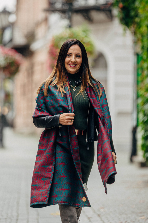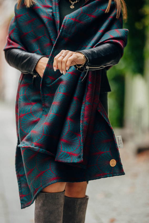 A shawl is made of wrap fabric, the length: 2m, the width of a wrap (0,6 - 0,7m). Just like a wrap, the shawl is made of fabric woven in LennyLamb. For women who ended their journey with babywearing but do not want to part with beautiful fabrics. It will complement your outfit, protect from cold or the sun and will simply bring pleasure.