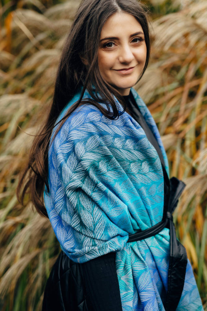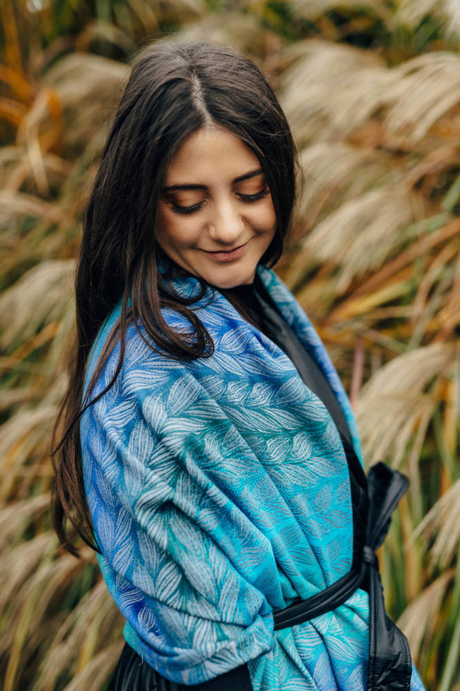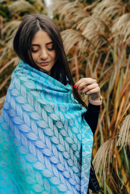 A shawl is made of wrap fabric, the length: 2m, the width of a wrap (0,6 - 0,7m). Just like a wrap, the shawl is made of fabric woven in LennyLamb. For women who ended their journey with babywearing but do not want to part with beautiful fabrics. It will complement your outfit, protect from cold or the sun and will simply bring pleasure.