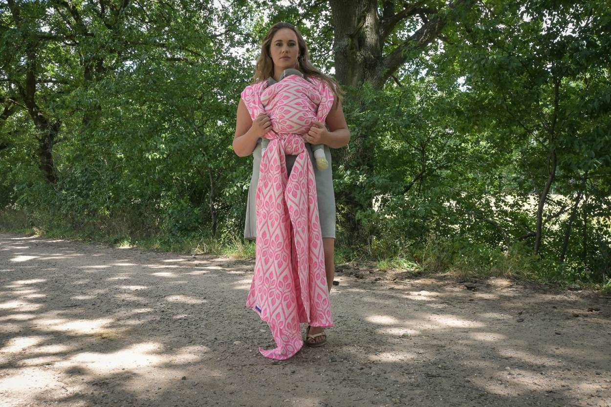 Woven wrap is simple to use and allow you to carry a baby in many different ways. You can try front carry like kangaroo or back positions like backpack. Good for long walk, because distributes the weight symmetrically.