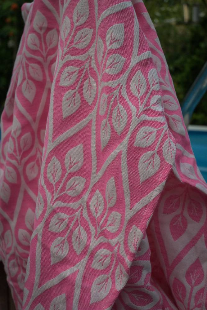 Lush! Need I say more? This vibrant pink in a wonderful blend with cashmere, silk and wool. It is easy to wrap with, enough bounce on the shoulders to give it a comfortable feel. The wrap is soft to the touch and gentle on the body, strong, supportive . Suitable for all.