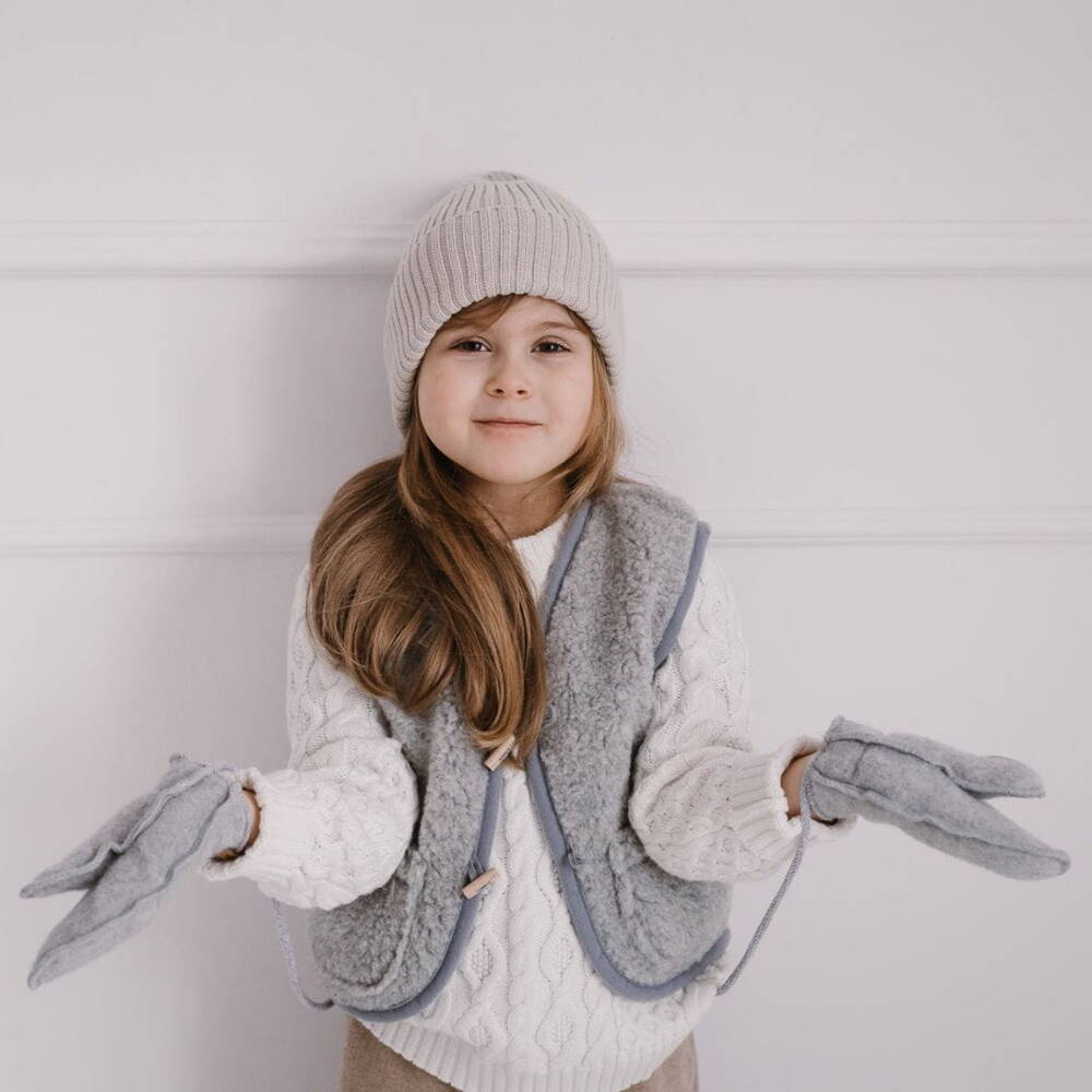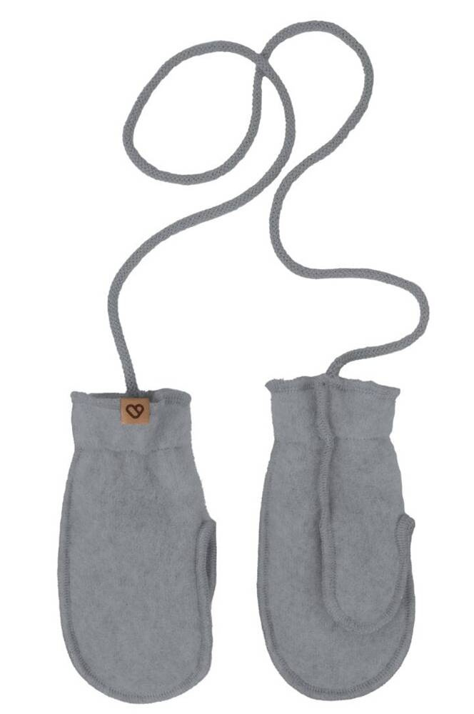 Soft, comfortable, and warm mittens on a string with cuffs, designed for the youngest children. These mittens are fingerless and feature eco-leather patches.