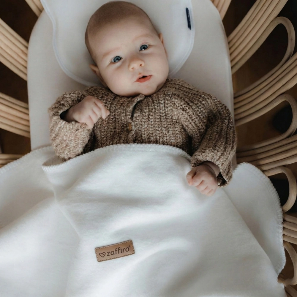 With dimensions of 75 × 100 cm, the blanket fits perfectly in a crib, bassinet, carrycot, and stroller.