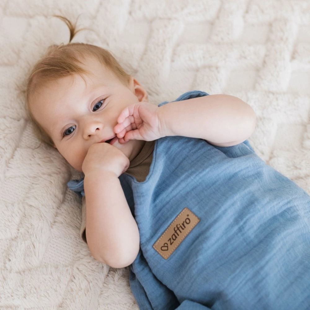 Zaffiro - Zaffiro Full Muslin Sleeping Bag 0.5 TOG 0–6m - Baby Blue