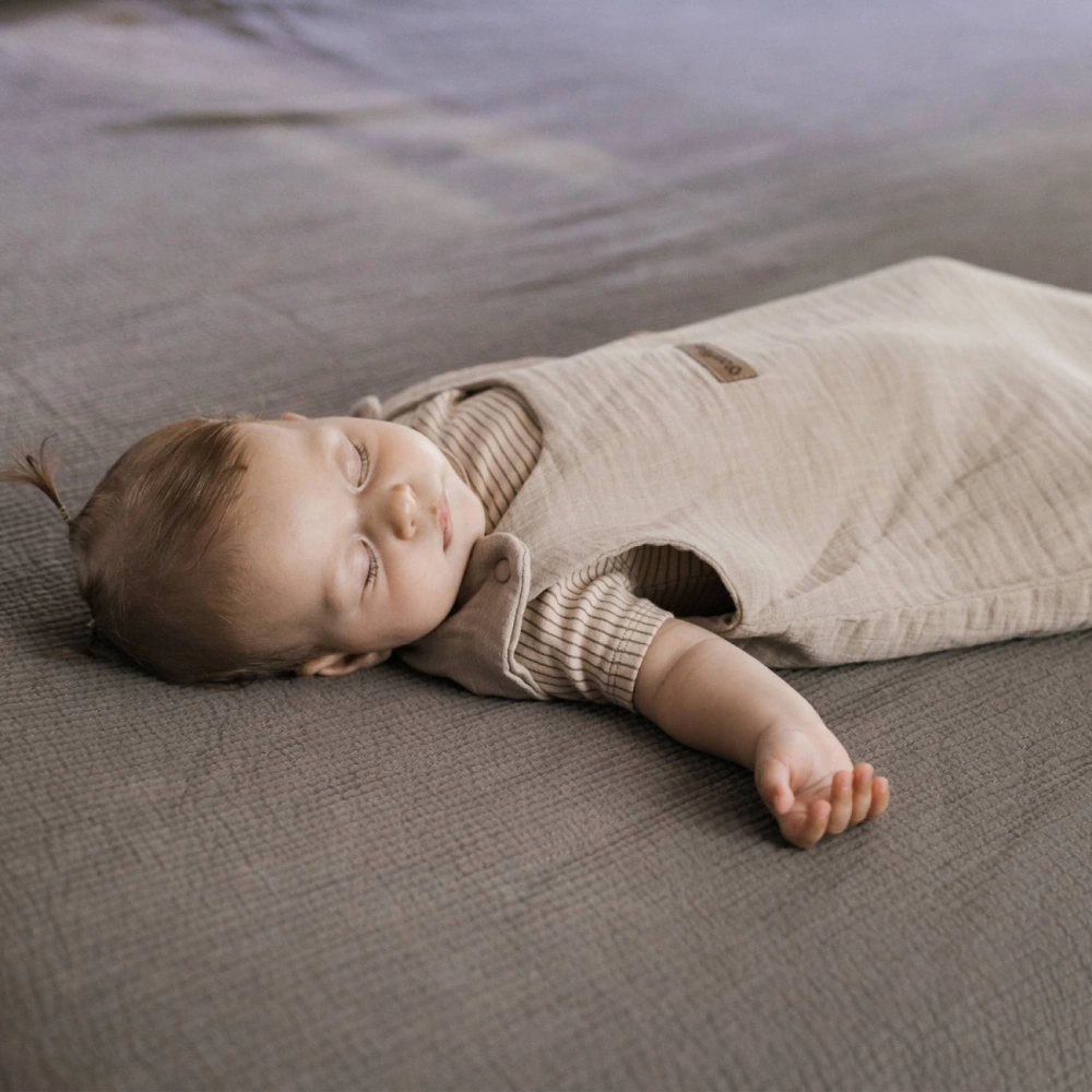 A baby sleeping bag is a practical and safe alternative to traditional blankets and duvets. It keeps your little one covered and warm throughout the night, so you can sleep peacefully, too. The sleeping bag has a special shape — wider at the bottom — to allow full freedom of movement without restricting the baby. It gently wraps your baby from the very first days of life.
