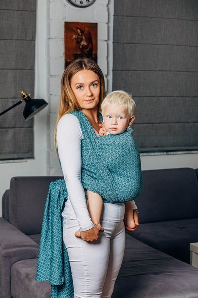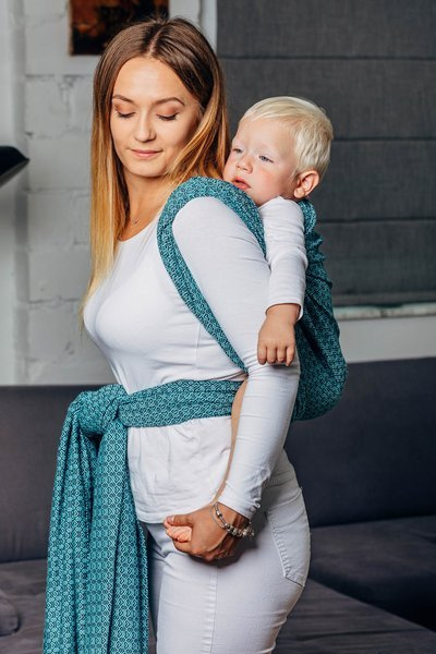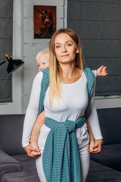 W pierwszym okresie wiązanie chusty może zabrać nieco czasu, ale jest to tylko kwestia nabrania wprawy i doświadczenia. Jeśli nie czujesz się wystarczająco pewnie warto skorzystać z pomocy Doradcy Noszenia Dzieci, który nauczy Cię wiązać chustę.