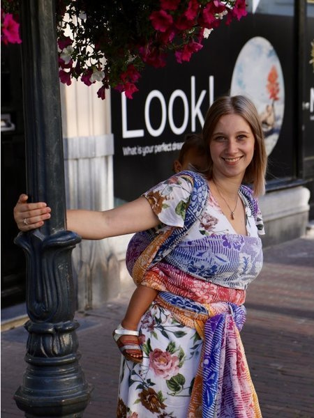 W pierwszym okresie wiązanie chusty może zabrać nieco czasu, ale jest to tylko kwestia nabrania wprawy i doświadczenia. Jeśli nie czujesz się wystarczająco pewnie warto skorzystać z pomocy Doradcy Noszenia Dzieci, który nauczy Cię wiązać chustę. Szczegóły w zakładce Doradcy Noszenia.