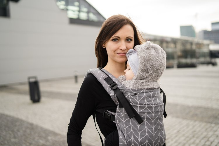 Nosidełko ma szeroki pas biodrowy, który wraz z mocno wypełnionymi pasami naramiennymi zabiera ciężar z Twoich ramion. Gdy twoje dziecko urośnie możesz dodatkowo podtrzymać śpiącą główkę kapturkiem, który jest dołączony do każdego nosidełka.