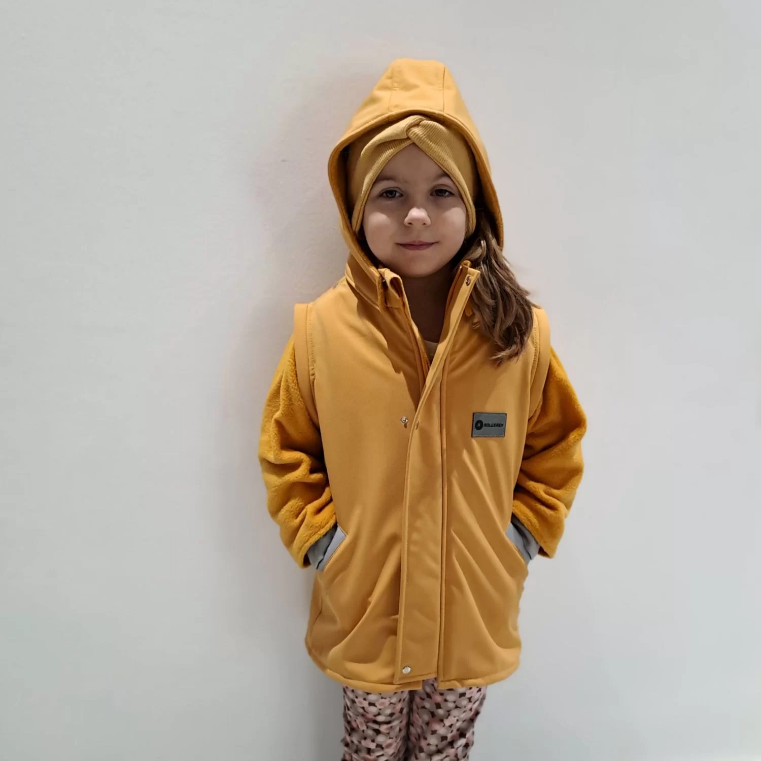 Dodatkowo, kurteczka posiada całkowicie odpinane rękawy, dzięki czemu nie tylko można je odpiąć w samochodzie, bez wyciągania dziecka z fotelika, żeby się nie przegrzało przy dłuższej podróży, ale również możemy używać samej kamizelki, jako ochrony od wiatru w porach przejściowych.