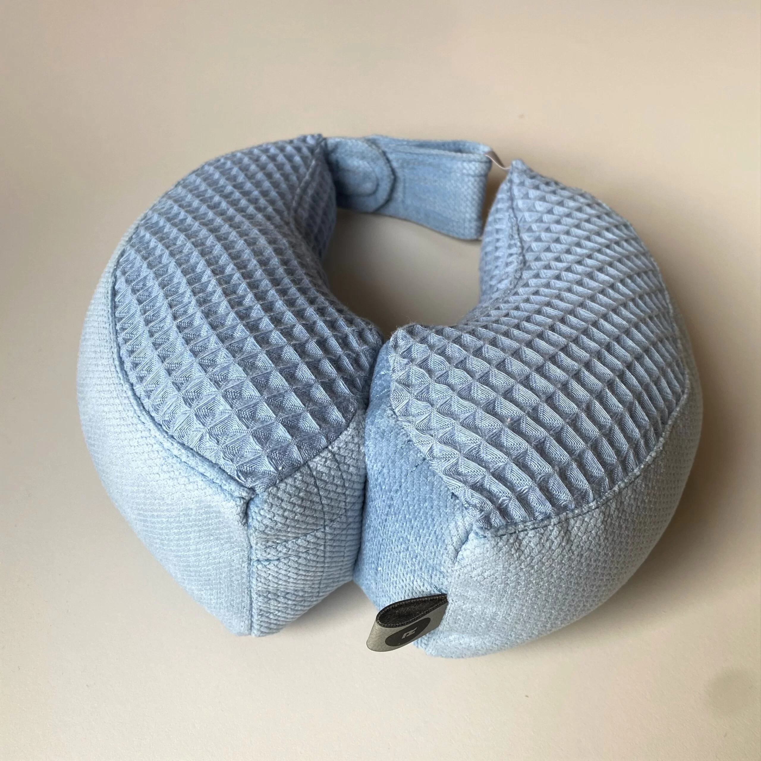 Rozmiar poduszki został zaprojektowany w taki sposób, aby zapewniał komfortowe warunki do drzemki dzieciom od ok. 2 do 6 lat. Wewnętrzny obwód poduszki to ok. 30 cm z możliwością regulacji. Produkt wykonany został z wysokiej jakości, wytrzymałej bawełny “wafel”, która jest jednocześnie miła i przyjemna w dotyku.